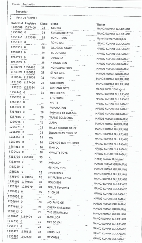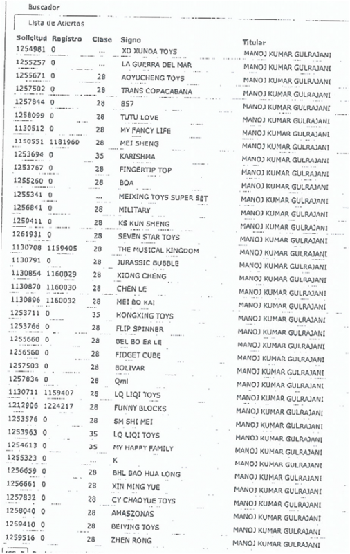 近日我局收到相關(guān)函件,稱有一名外籍商人將120多個(gè)中國(guó)玩具企業(yè)的廠名及商標(biāo)以個(gè)人名義在智利工業(yè)產(chǎn)權(quán)局(INAPI)申請(qǐng)注冊(cè),主要涉及第28類玩具相關(guān)產(chǎn)品(相關(guān)案件信息見(jiàn)附件)。據(jù)了解,目前其大部分商標(biāo)注冊(cè)申請(qǐng)已經(jīng)進(jìn)入公告程序,如無(wú)異議將可能在近日內(nèi)獲得批準(zhǔn)。