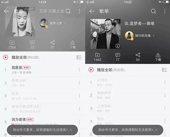 這幾天,小編手機里的網(wǎng)易云歌單灰了一大片。繼前段時間網(wǎng)易云音樂大量韓文歌曲下架之后,這次輪到港臺歌曲了。 盡管網(wǎng)易聲稱下架曲目僅占曲庫1%左右,但毫無疑問,對真正喜愛這些歌手的用戶來說,實在是很傷感情的一…