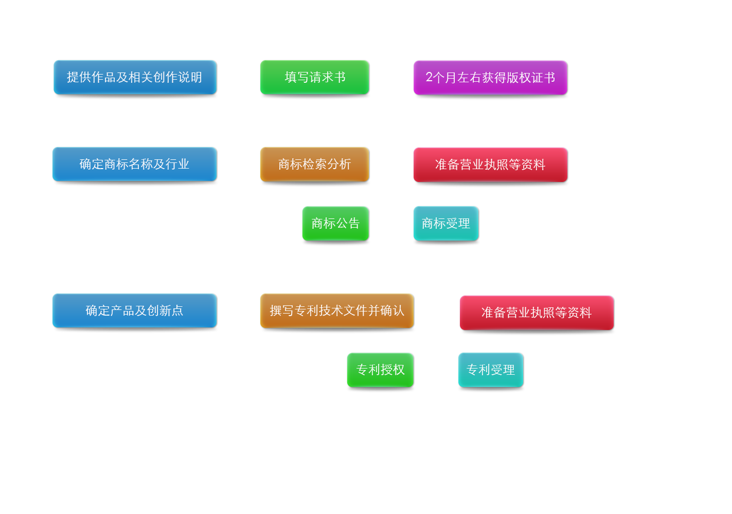 1. 提出申請(qǐng)后一個(gè)半月左右送達(dá)標(biāo)明國家工商行政管理商標(biāo)局受理號(hào)碼的受理文件; 2. 在申請(qǐng)受理后六個(gè)月內(nèi),商標(biāo)局對(duì)商標(biāo)進(jìn)行實(shí)質(zhì)審查; 3. 提出申請(qǐng)后一年,商標(biāo)局發(fā)布初審公告并寄送申請(qǐng)人; 4.公告之日起三個(gè)月后,發(fā)正式《商標(biāo)注冊(cè)證》; 5.注冊(cè)全部時(shí)間約為二十四個(gè)月; 6.商標(biāo)自提出申請(qǐng)后即可以使用(使用時(shí)不要打注冊(cè)標(biāo)記)。