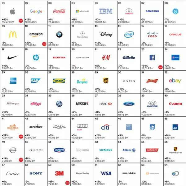 全球最具價(jià)值品牌前十位排名: